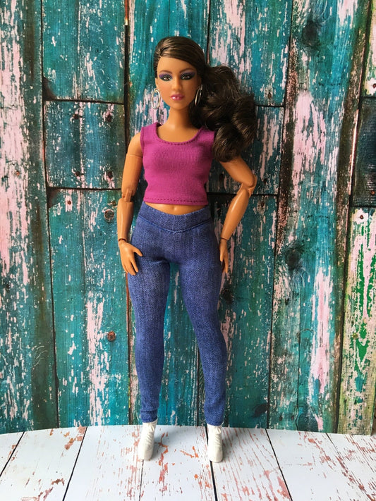 BQ-AZURE – Blue Stretch Jeggings for 11" 1/6 Scale Curvy Fashion Dolls