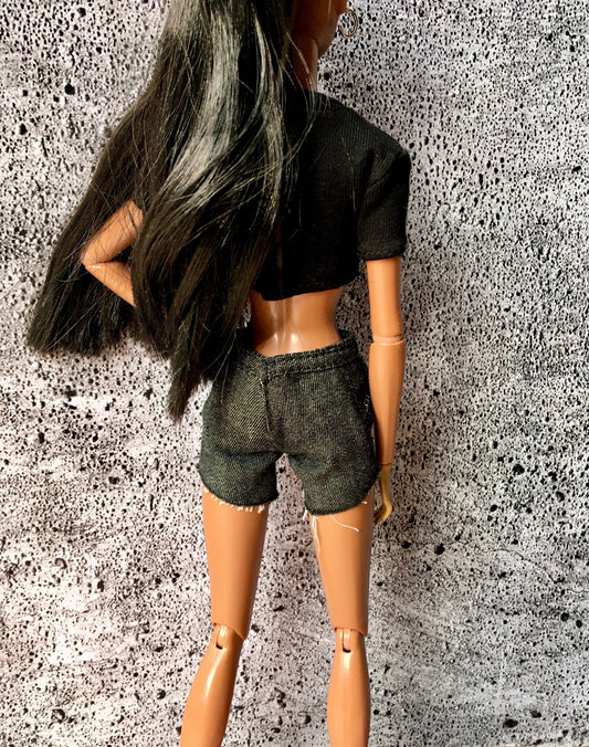 Ash Raw Hem Denim Shorts for NuFace Doll 12.5"