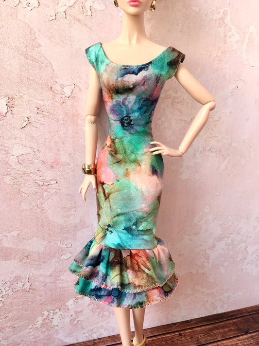 BQ-LARA – Floral Midi Dress with Mermaid Hem for 12" 1/6 Scale Fashion Dolls (more colors)
