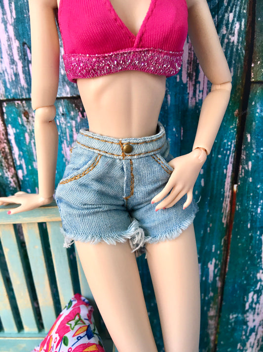 BQ-AYLA – Roll-up Denim Shorts for 12" 1/6 Scale Fashion Dolls
