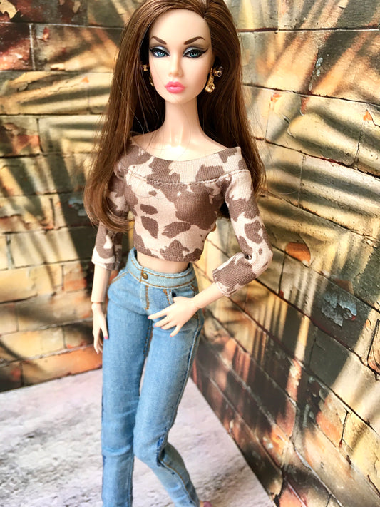 BQ-LUNIA – Off-Shoulder Top with Flower Print for 12" 1/6 Scale Fashion Dolls
