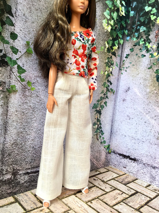 Pantalon palazzo en lin pour poupées mannequins 29 cm